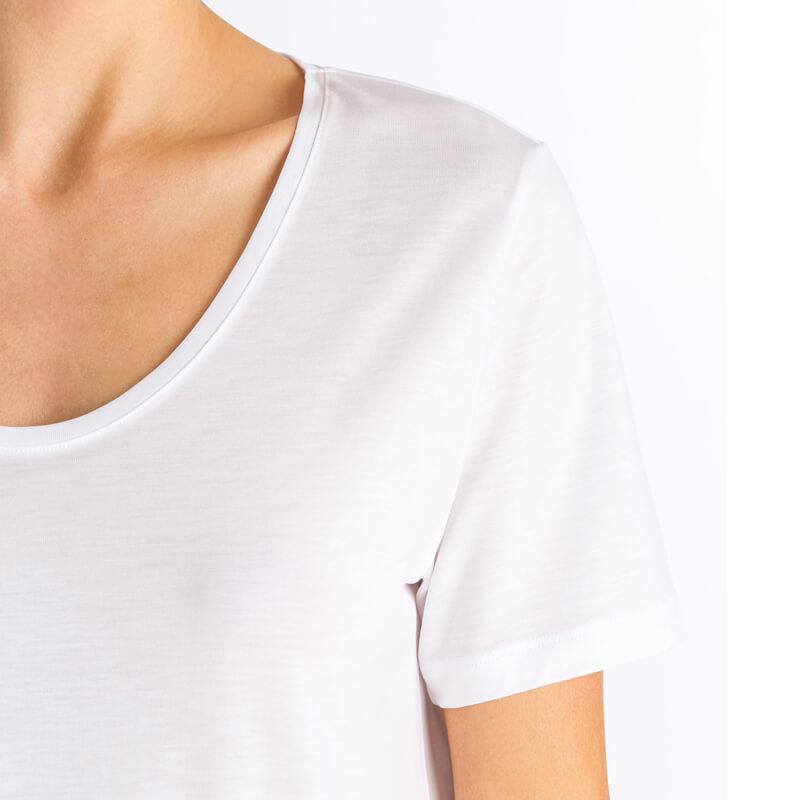 Balance Short Sleeve Shirt by Hanro crafted from eco-friendly super soft Lyocell, an environmentally sustainable textile. Smooth fabric which drapes beautifully to flatter the figure, Lyocell is created from cellulose fibres which have natural breathability and greater moisture absorption than cotton.