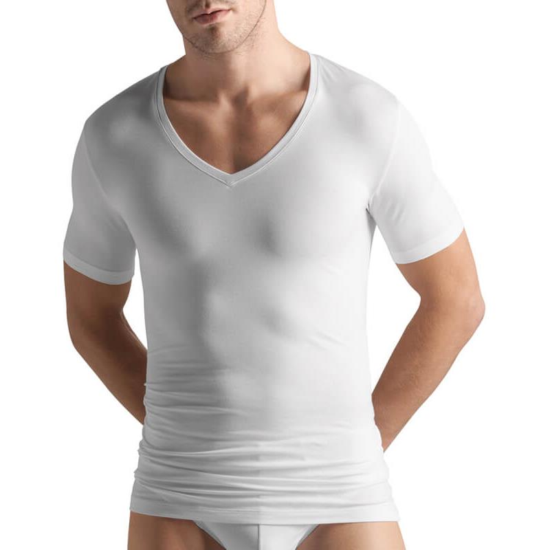 Hanro Cotton Superior V-Neck T-Shirt is made from the finest, long staple Egyptian Giza cotton which has been mercerised and can be worn as outerwear.