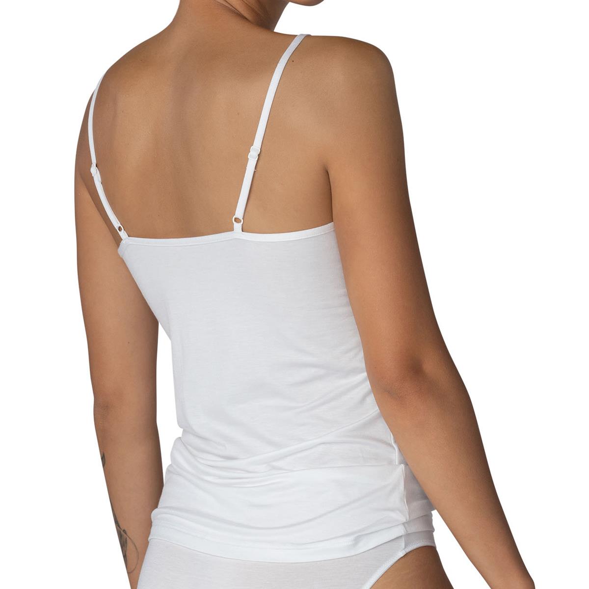 Mey's Luise collection created in a soft Modal blend with pretty lace detailing. Slim fitting spaghetti top with deep v-neckline and adjustable spaghetti straps.