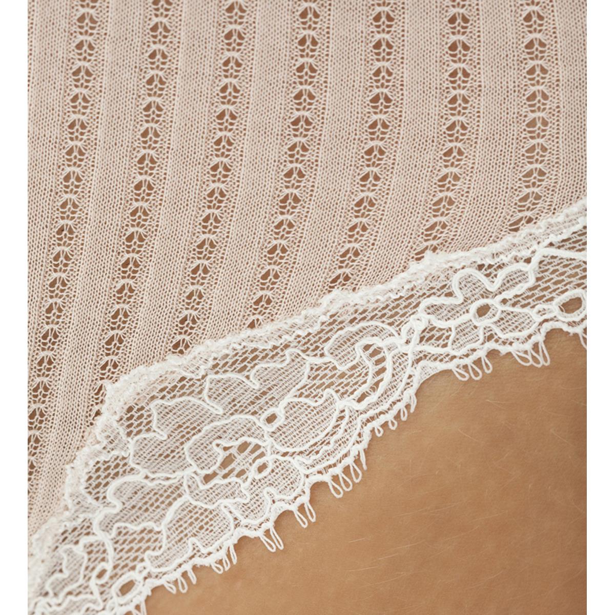 Small works of art are hidden in the airy ajouré rib. Filigree patterns crowned by delicate Calais lace permeate the pure cotton of these slip briefs. So much luxury is only possible with exquisite handcrafted products.