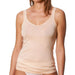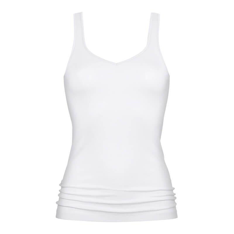 Mey's Noblesse Sporty Top for women created from especially fine, smooth woven Pima cotton and without side seams fits close to the skin to be invisible under clothing. With wide straps, a v neckline and finished with a stretch back panel and hem so it moves with you as you move. Perfect as underwear or as loungwear.