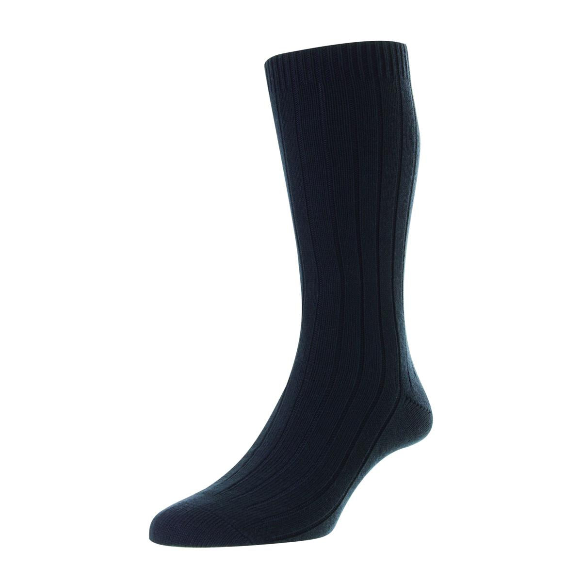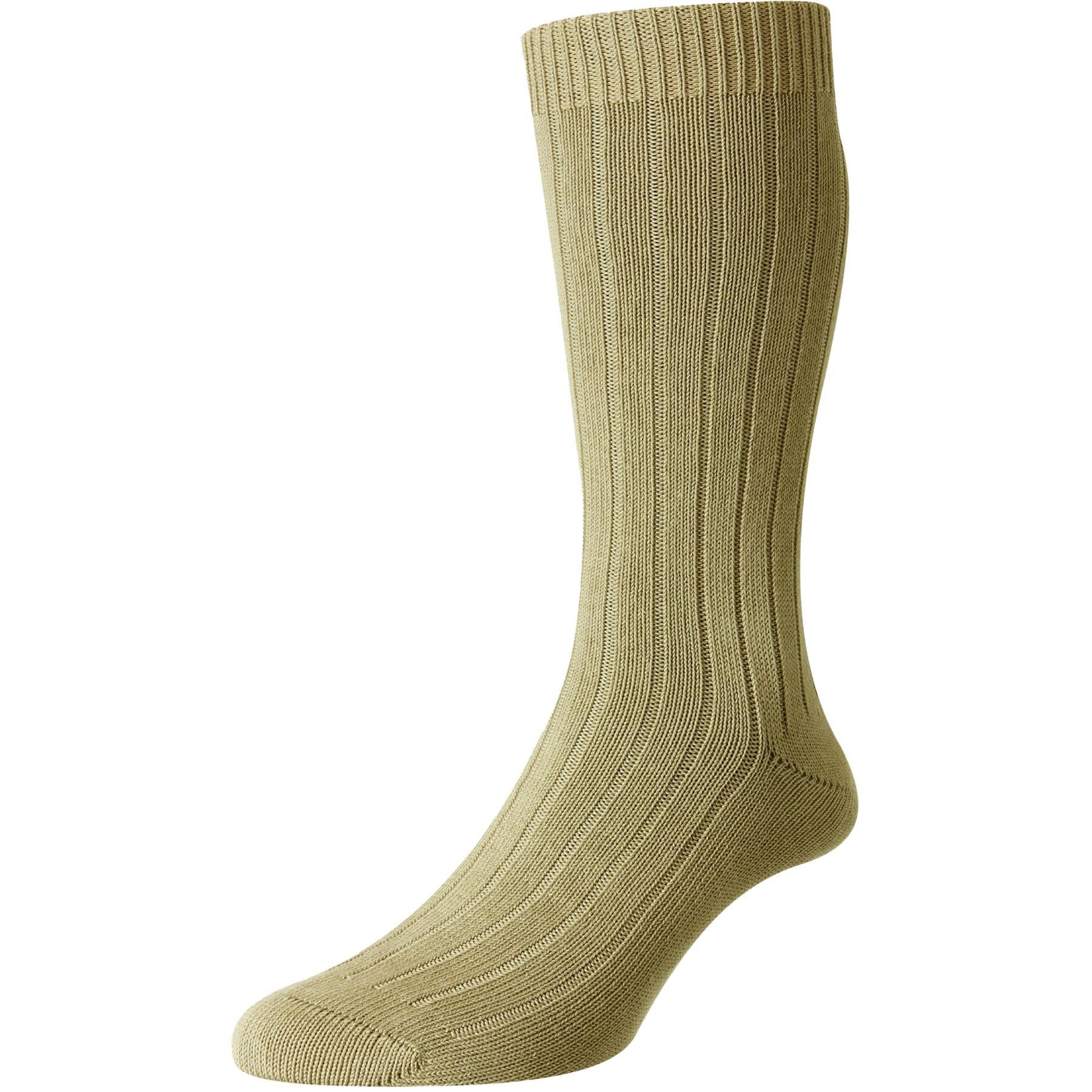 Seaford organic cotton crew socks are mid-weight and are knitted into durable, thicker fabric showing Pantherella's commitment to sustainability and crafting products with duration.