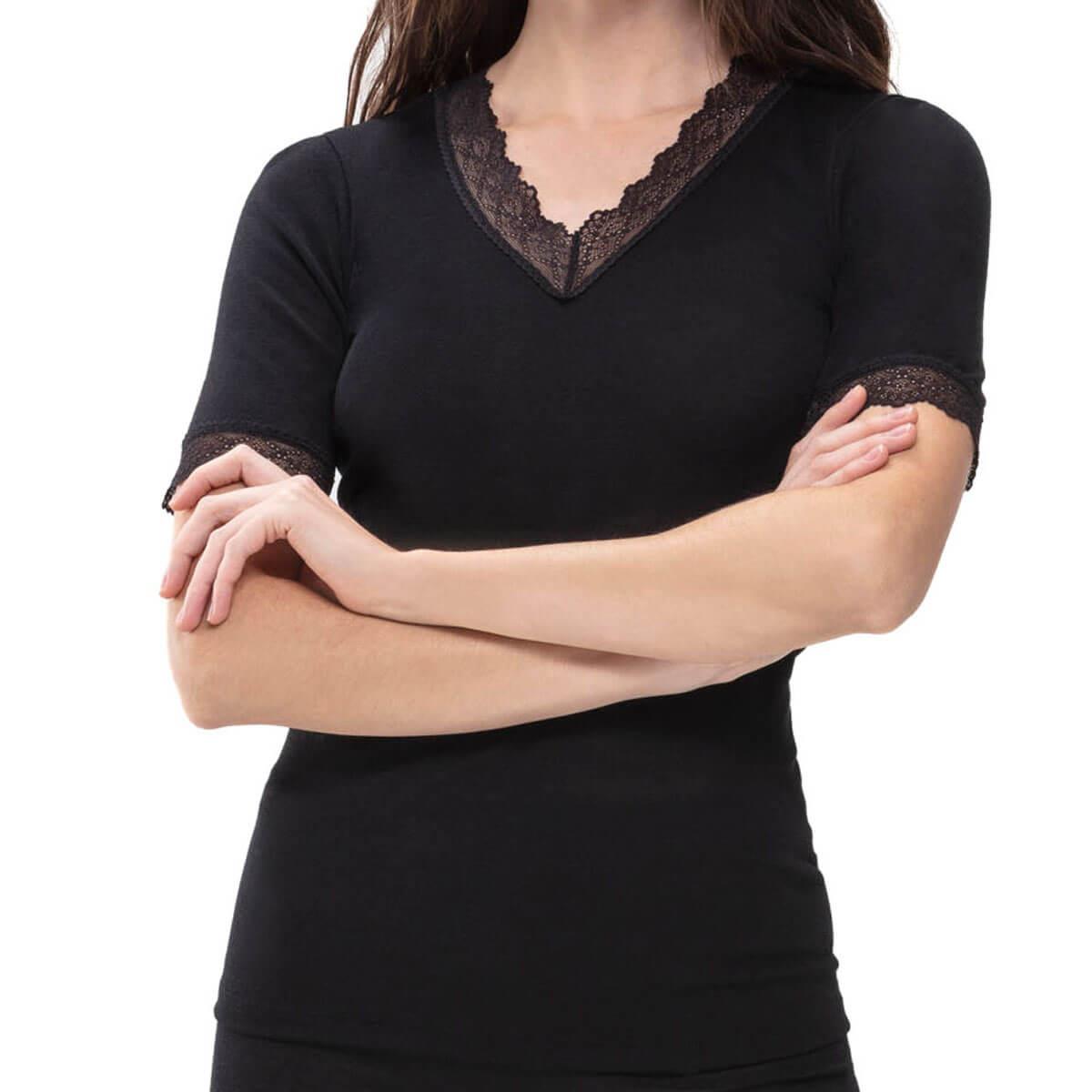 Mey's Silk Touch Wool collection crafted from a soft blend of virgin wool and silk with delicate lace details. Exceptionally lightweight and ideal for natural temperature regulation.