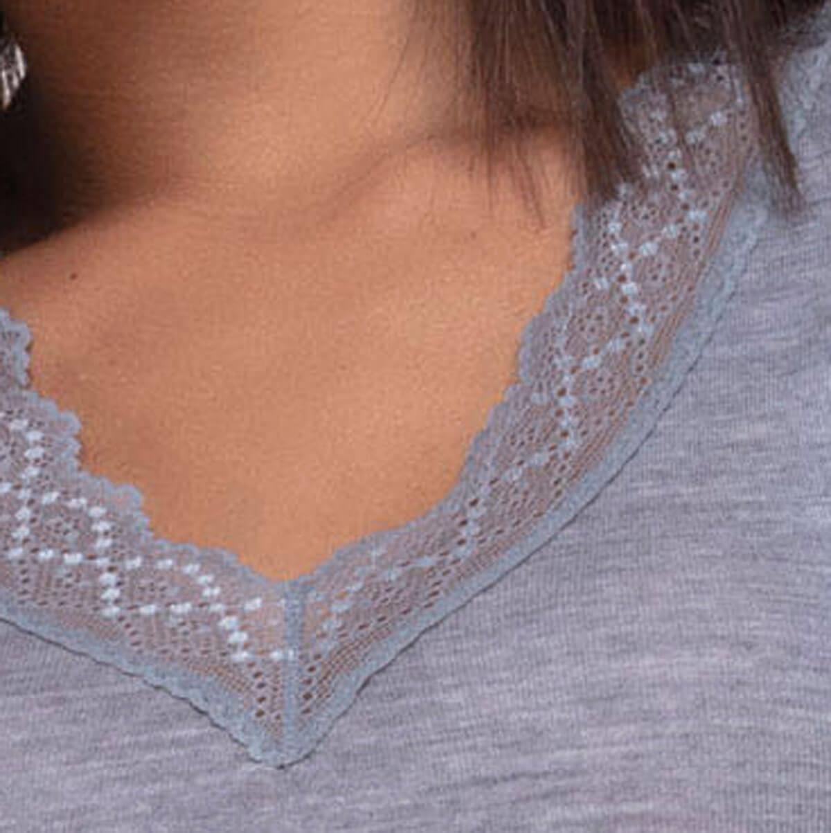 Ideal for wearing either layered for day or on it's own as nightwear, this top has pretty lace edging the v-neck and the short sleeves.