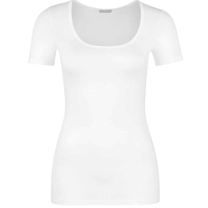 Hanro Ultralight Short Sleeve Shirt for women in a modern design and with a wide scoop neck is great for layering under a shirt or jacket and perfect to wear on its own.